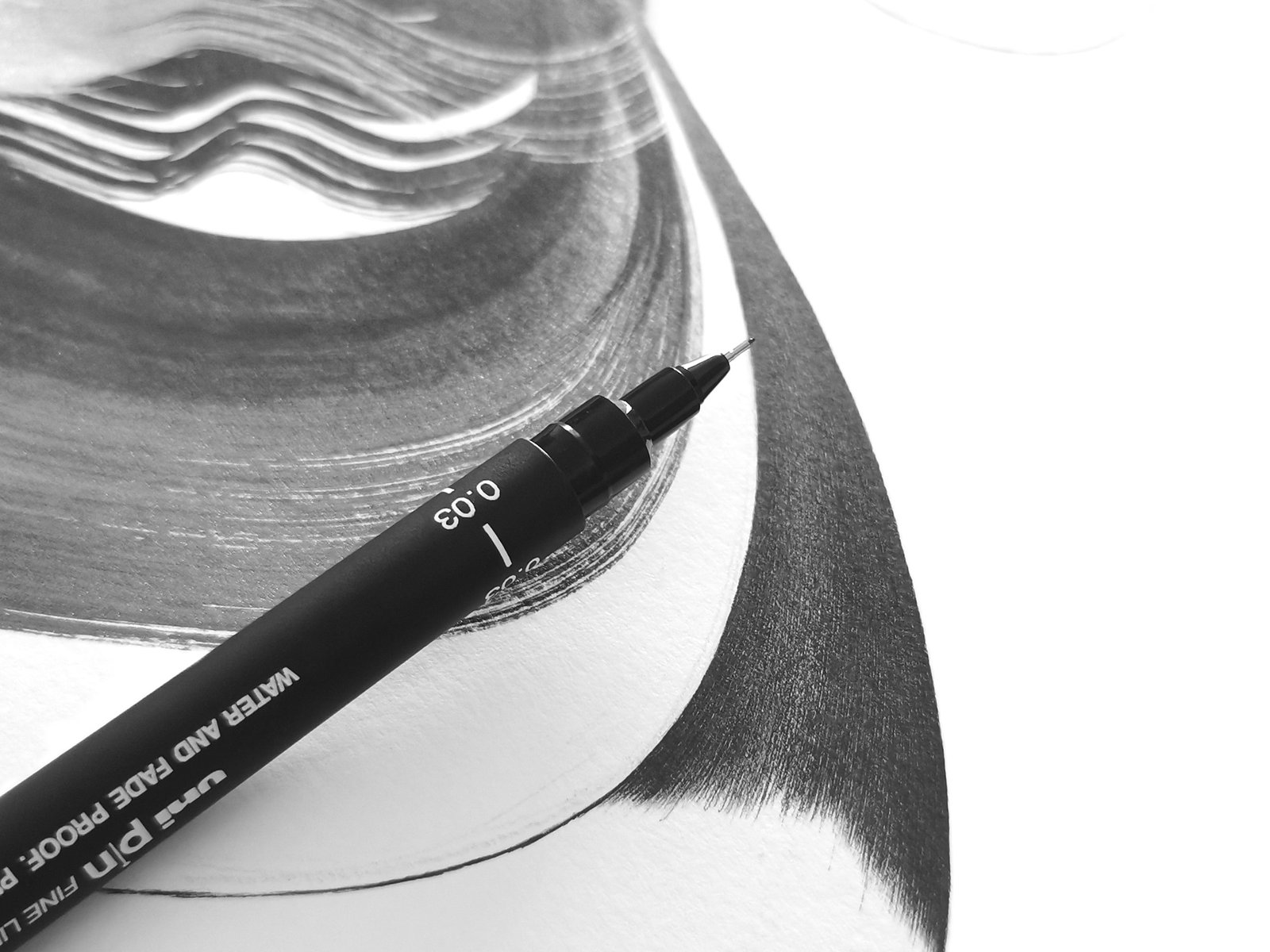 À partir de cette base instinctive, Anaïs entre dans une phase de travail minutieux, presque méditatif. Guidée par les lignes initiales et l’impulsion qu’elles dégagent, elle développe la composition par une accumulation de tracés d’une finesse extrême réalisés au crayon à pointe de 0,03 mm à encre permanente. Cette répétition méthodique répond au geste initial, créant un dialogue entre spontanéité et précision.